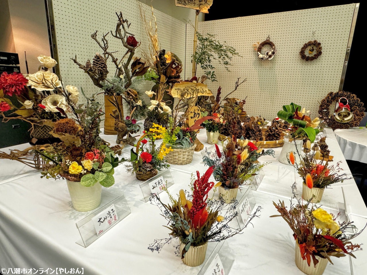 1日(土)・2日(日)ともに午前10時から午後4時まで開催され、生け花や短歌、俳句、書道、カラー魚拓、木工芸、絵画、写真、ひょうたんアート、フラワーアレンジメント、洋ラン、多肉植物やサボテンの寄せ植えなど、幅広いジャンルの作品が会場を彩ります。