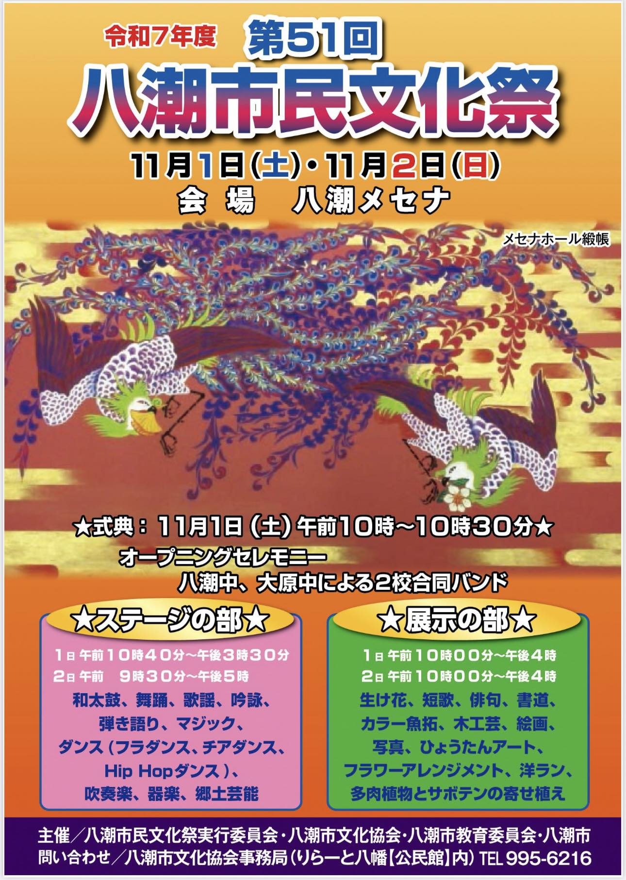 八潮市民文化祭は、市民の文化活動の発表の場であると同時に、市民同士が交流を深める貴重な機会です。地域に根ざした文化の息吹を感じられる2日間となりますので、ぜひ足を運んでみてはいかがでしょうか。