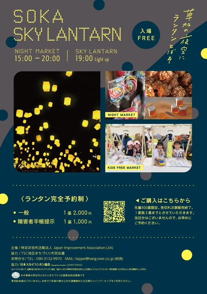草加市中央の草加中央防災広場で、2025年10月25日(土)、「SOKA SKY LANTARN(ソウカ スカイランタン)」が開催されます。主催は特定非営利活動法人Japan Improvement Association。幻想的なランタンが夜空を照らす特別な一夜として、多くの来場者でにぎわうことが期待されています。