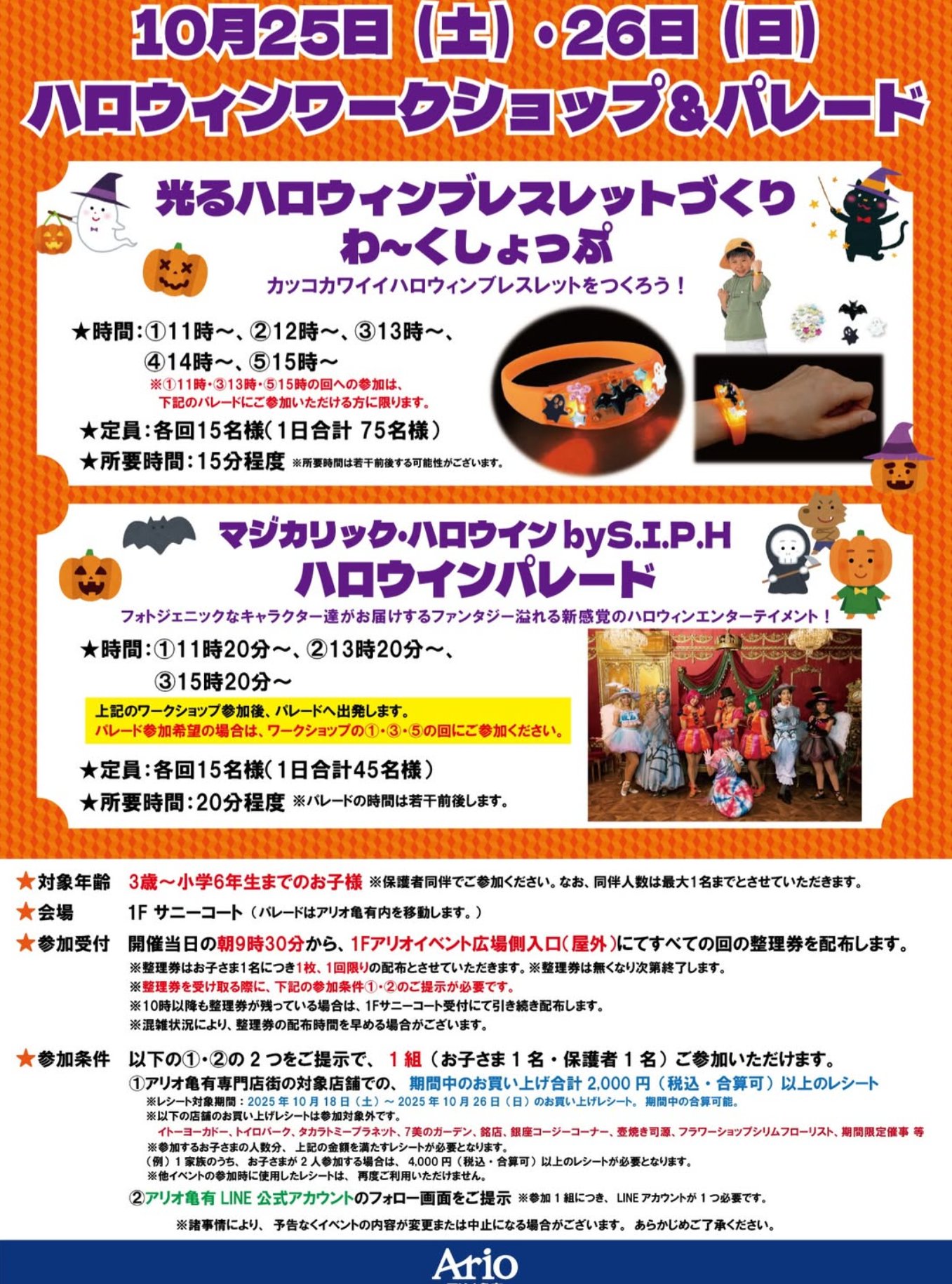 ・アリオ亀有「光るハロウィンブレスレットづくり&パレード」