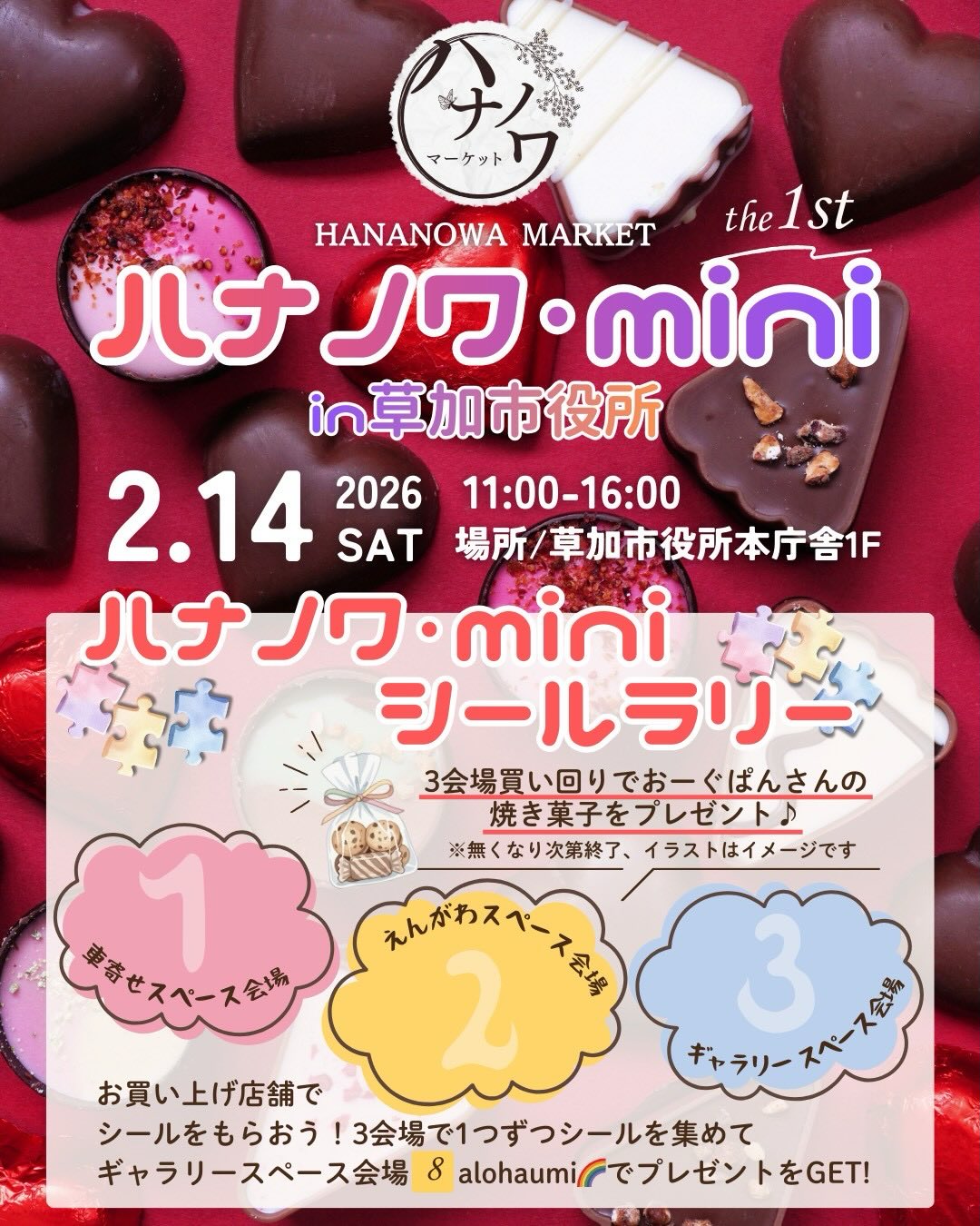 草加市役所本庁舎を会場に、地域活性化を目的としたイベント「ハナノワ・mini in 草加市役所」が、2026年2月14日(土)に開催されます。時間は午前11時から午後4時まで。市役所を活用したトライアル・サウンディングの一環として実施されるもので、草加市役所での開催は今回が初めてです。