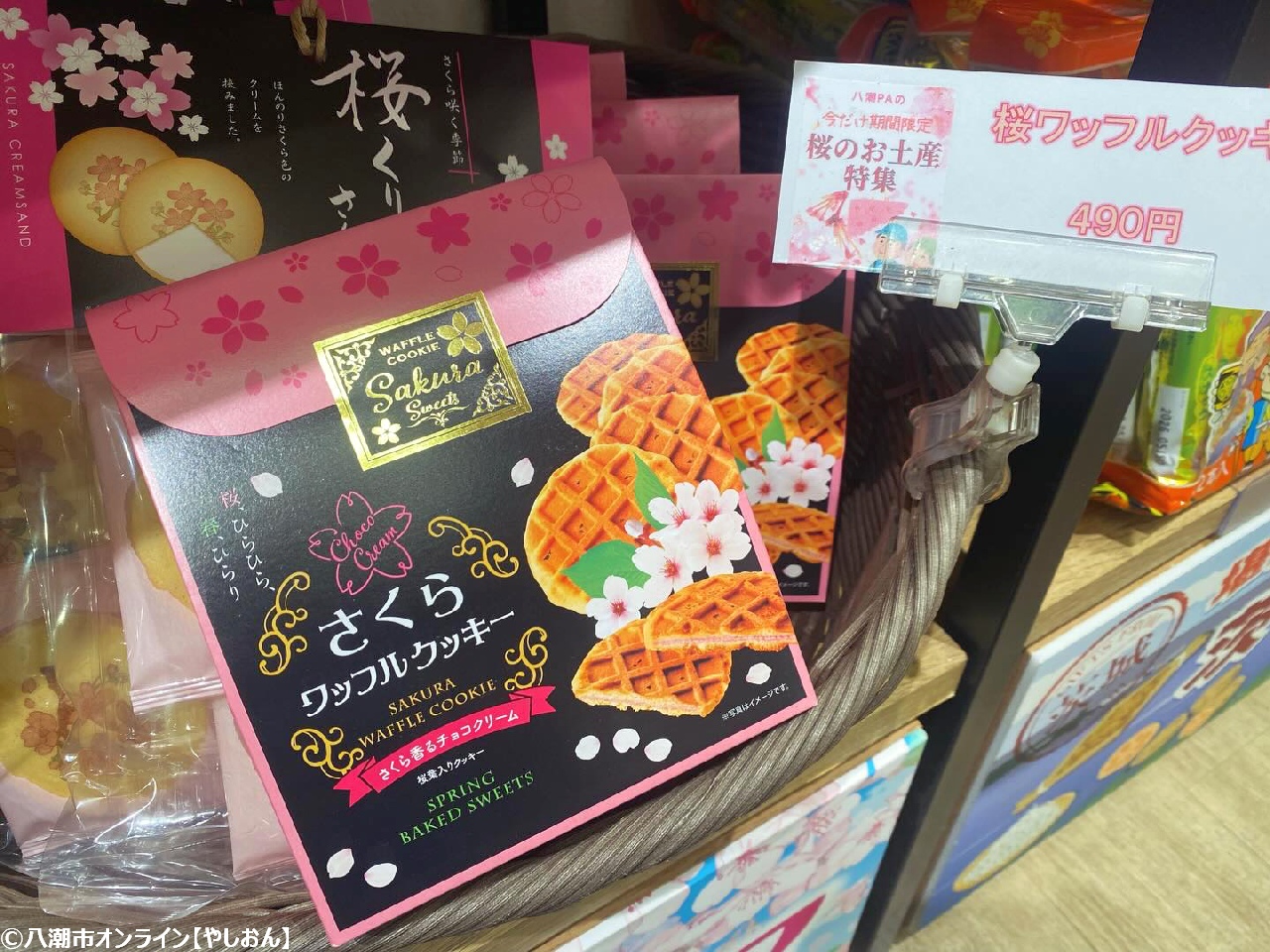 首都高速の休憩スポットとして親しまれている八潮市の八潮パーキングエリアで、今年も春恒例の「桜フェア」が始まりました。店内は桜色のパッケージがずらりと並び、ひと足早くお花見気分を楽しめる空間になっています。