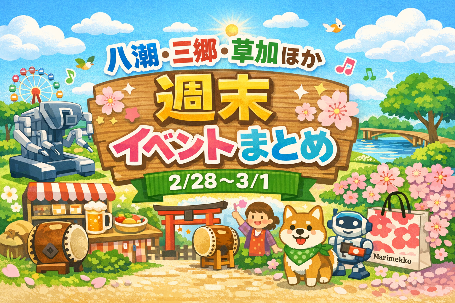 今週末、2月28日(土)と3月1日(日)は、八潮市内はもちろん、三郷・草加・越谷、そして葛飾区水元まで、気になるイベントが目白押しです。