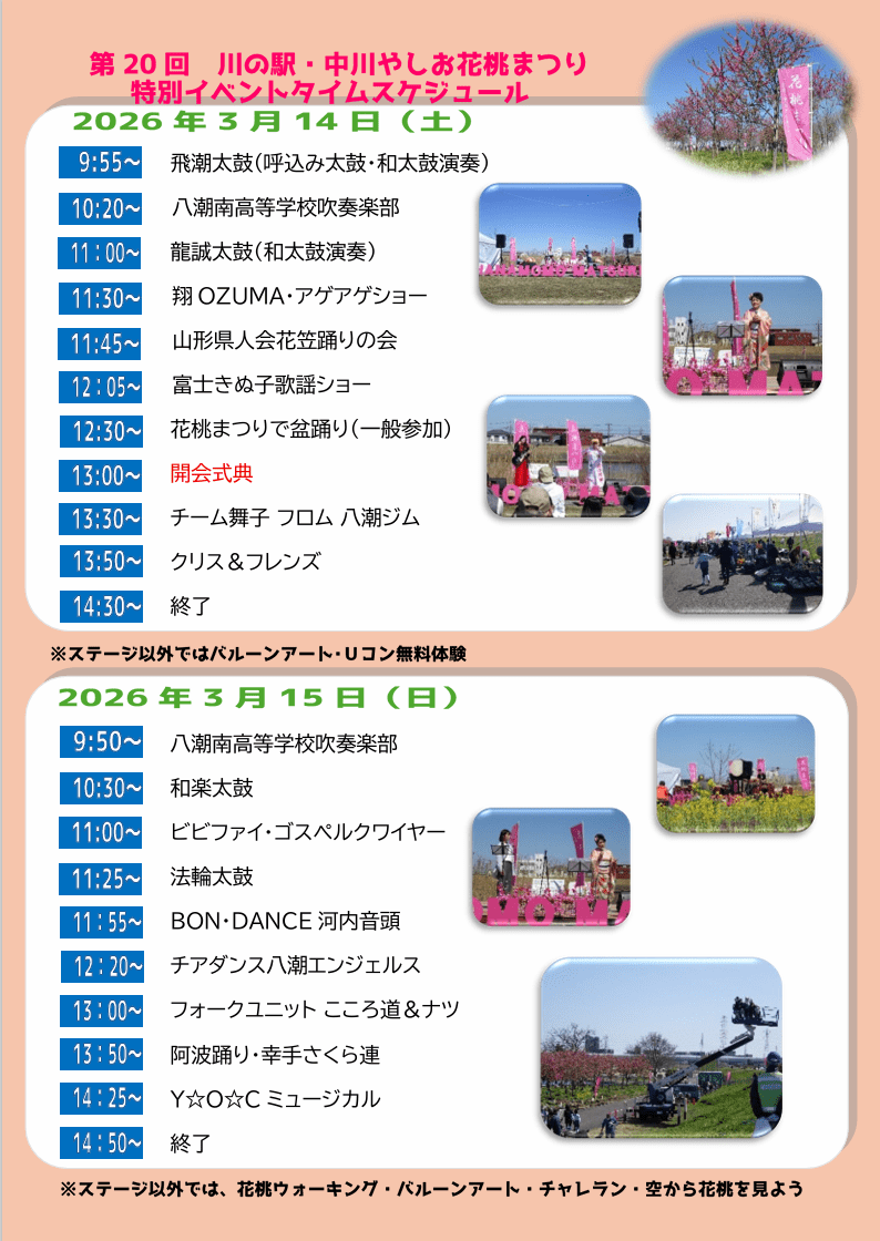 名称:第20回 川の駅・中川やしお花桃まつり