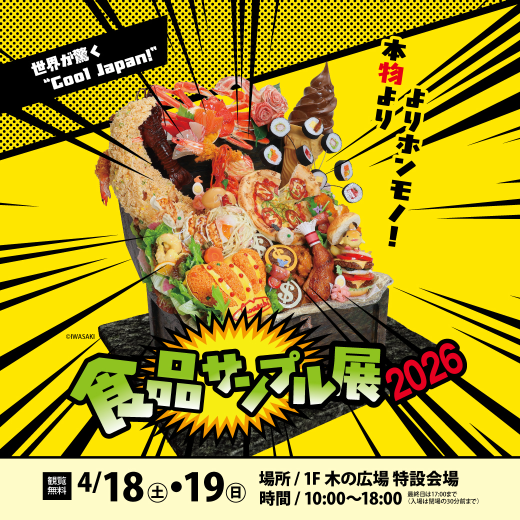 越谷市のイオンレイクタウンmoriで、ユニークな体験型イベント「食品サンプル展2026」が、4月18日(土)・19日(日)の2日間にわたり開催されます。