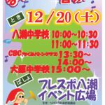 駐車場あり。イベント当日は15時30分から古新田稲荷神社および中川八潮フラワーパークにて「サンタからのプレゼント配布」(先着順)。