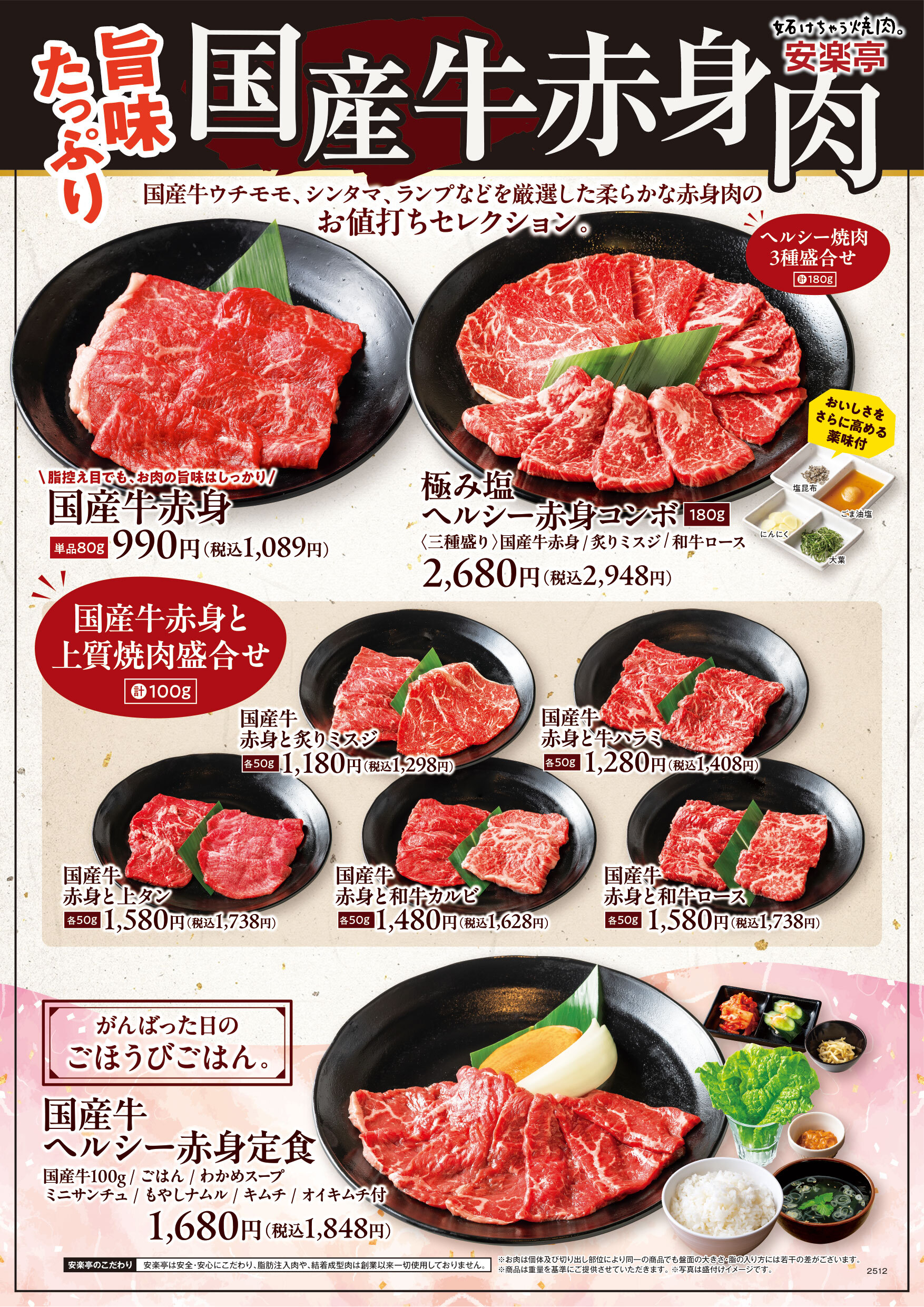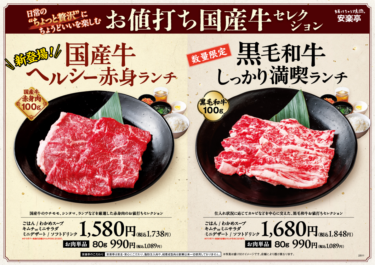 先行販売店舗では、「肉の味がしっかり楽しめる」「最後まで美味しく食べられる」といった声も寄せられており、赤身の美味しさを主役にした焼肉として好評を得ています。赤身も黒毛和牛も、その日の自分にちょうどいい一皿を選べることが、いまの時代に合った焼肉の価値。安楽亭は今後も、多様なニーズに応える焼肉体験を提案していくとしています。