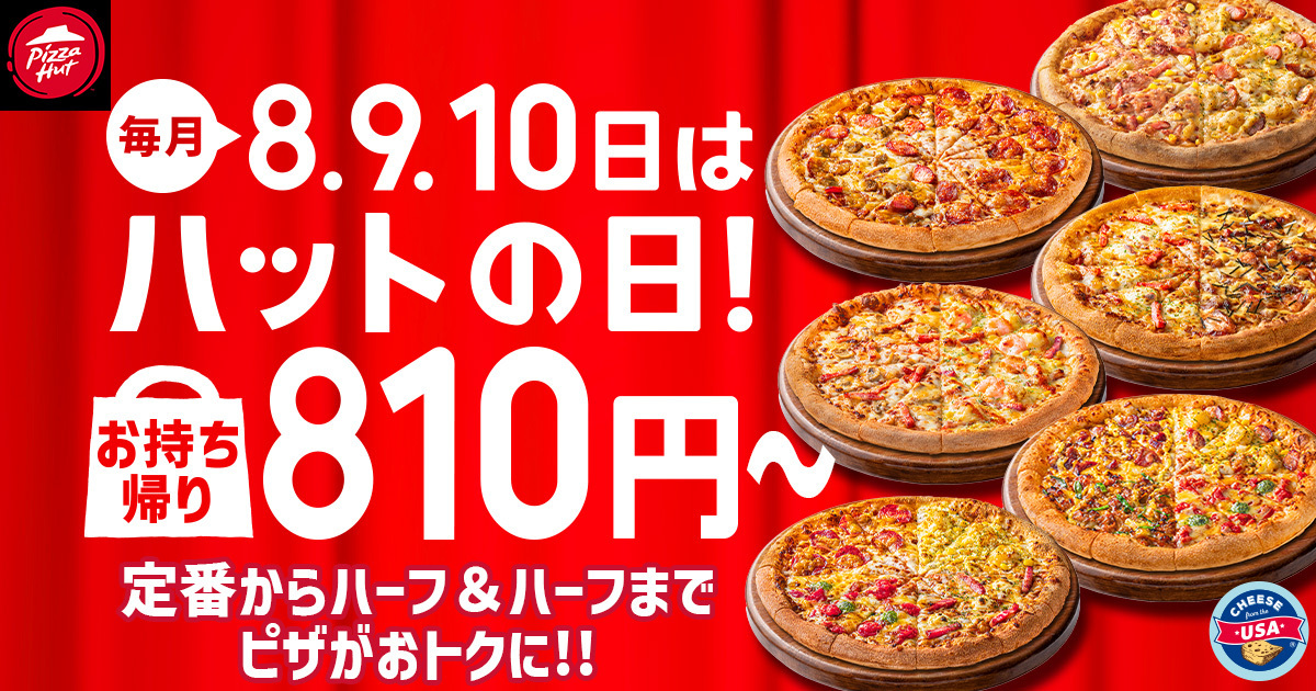 まず注目したいのが、毎月恒例となった「ハットの日」。2月は8日(日)から10日(火)までの3日間、お持ち帰り限定でMサイズピザが810円になるおトクな企画が実施されています。対象はマルゲリータやペパロニクラシックなど定番4種。通常1,800円台のピザが半額以下になる計算で、「今日は迷わずピザでいいか」と思わせる価格設定です。