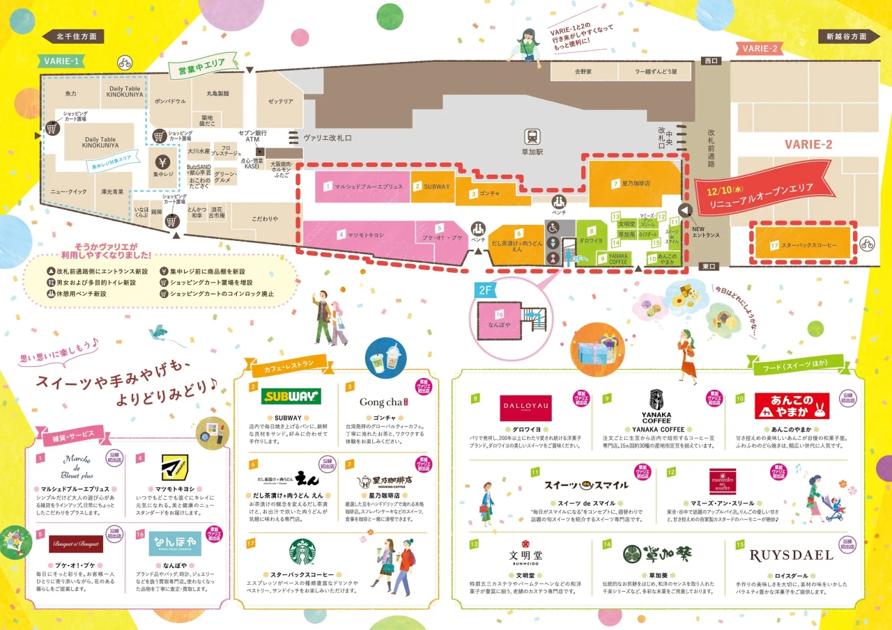 1995年の開業以来、草加ヴァリエは地域の暮らしに寄り添う駅直結商業施設として愛されてきました。2018年のヴァリエ2リニューアルを皮切りに段階的な改装を進め、今回の第3期エリアの完成をもって全62店舗体制へ。開業30周年を迎える節目に、草加駅の新しい顔として、より魅力的なショッピング体験を提供していく予定です。