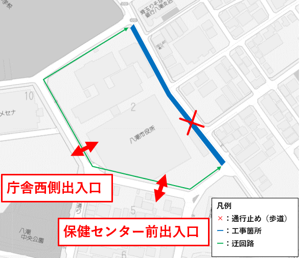 3月18日まで終日規制 来庁の際は西側・保健センター前出入口の利用を
