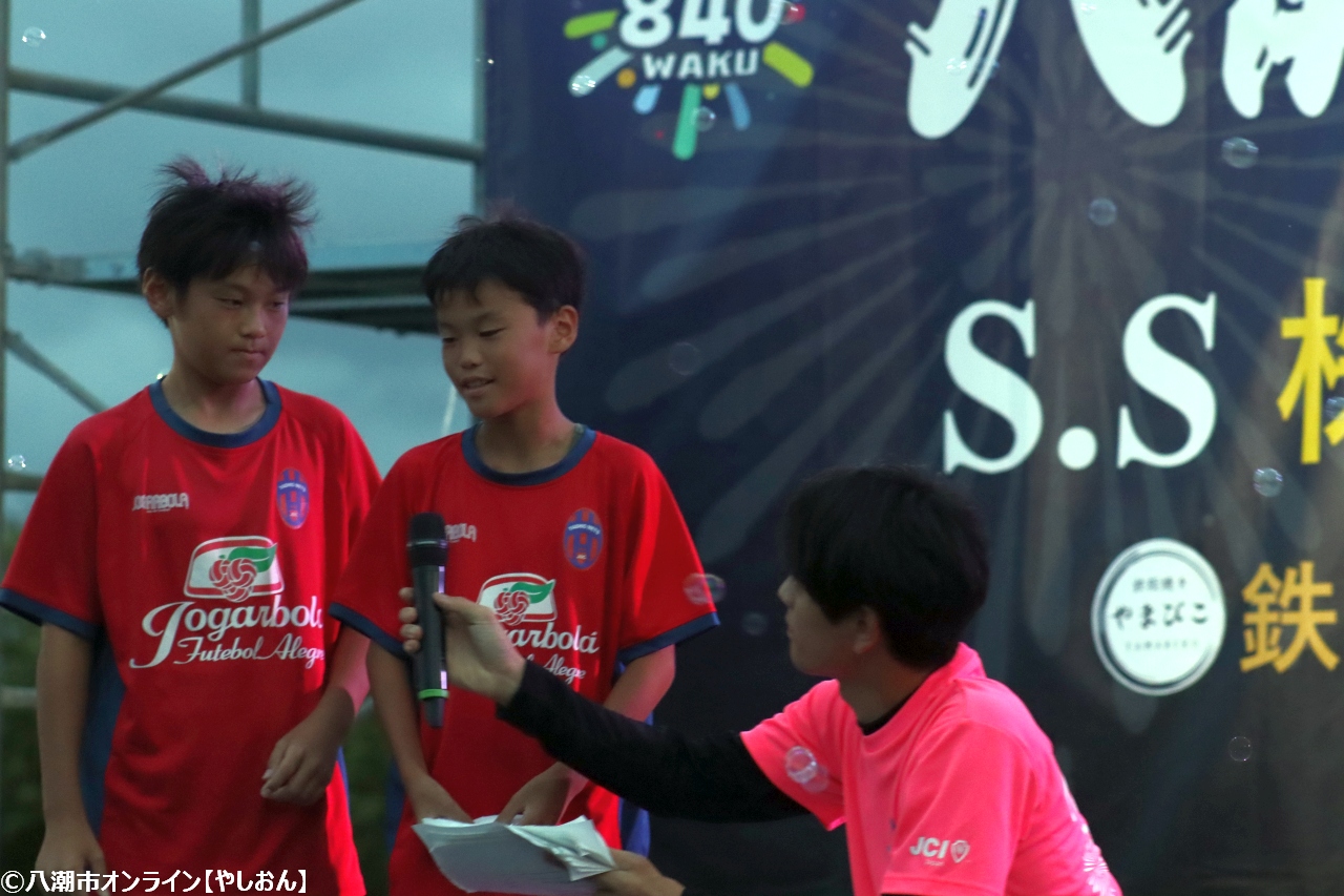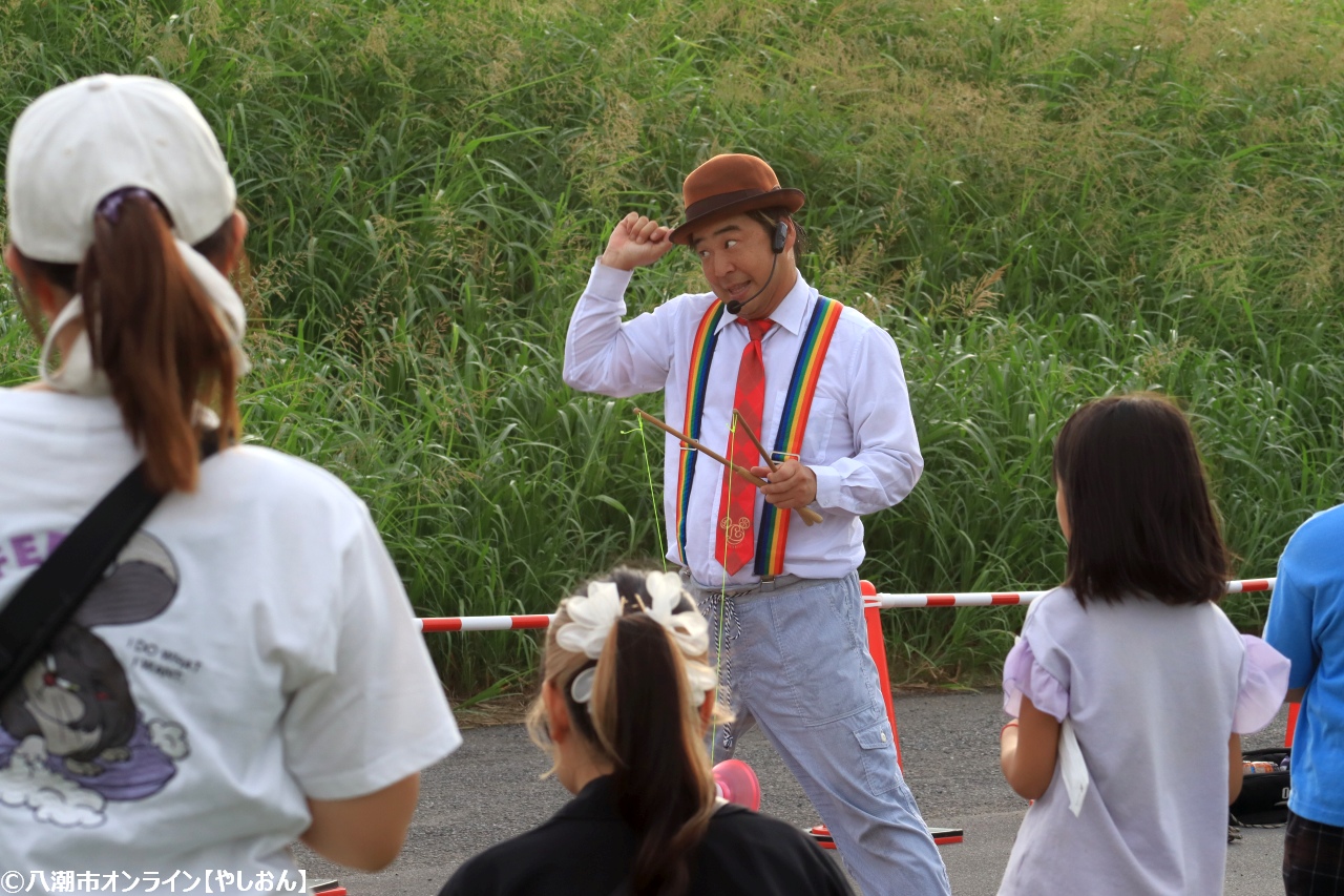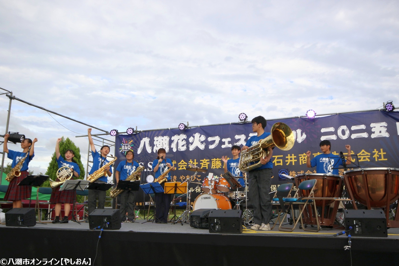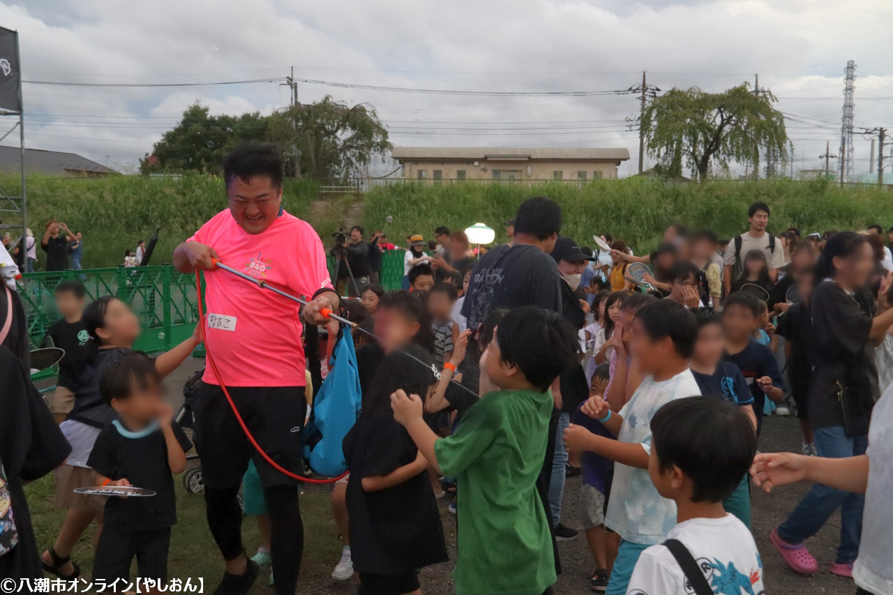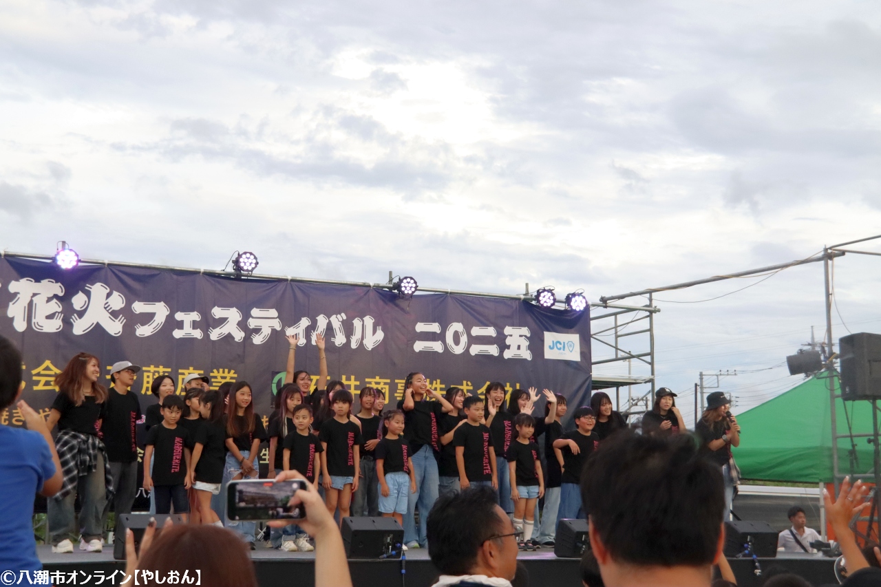 水を浴びて歓声を上げる子、逃げながらも楽しそうに追いかける子と、まさに笑顔の連鎖でした。ステージでは、統合を控え現校名としては最後の出場となる八潮南高校吹奏楽部の演奏、迫力ある龍誠太鼓、そして初出演のマーガレットダンスサークルの華やかなダンスが花を添えました。
