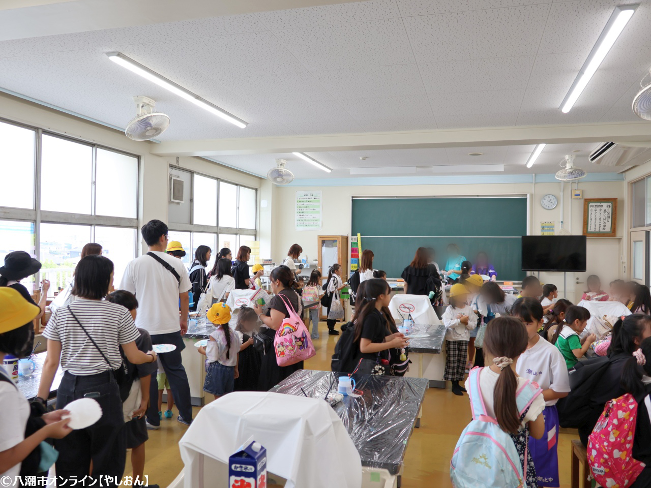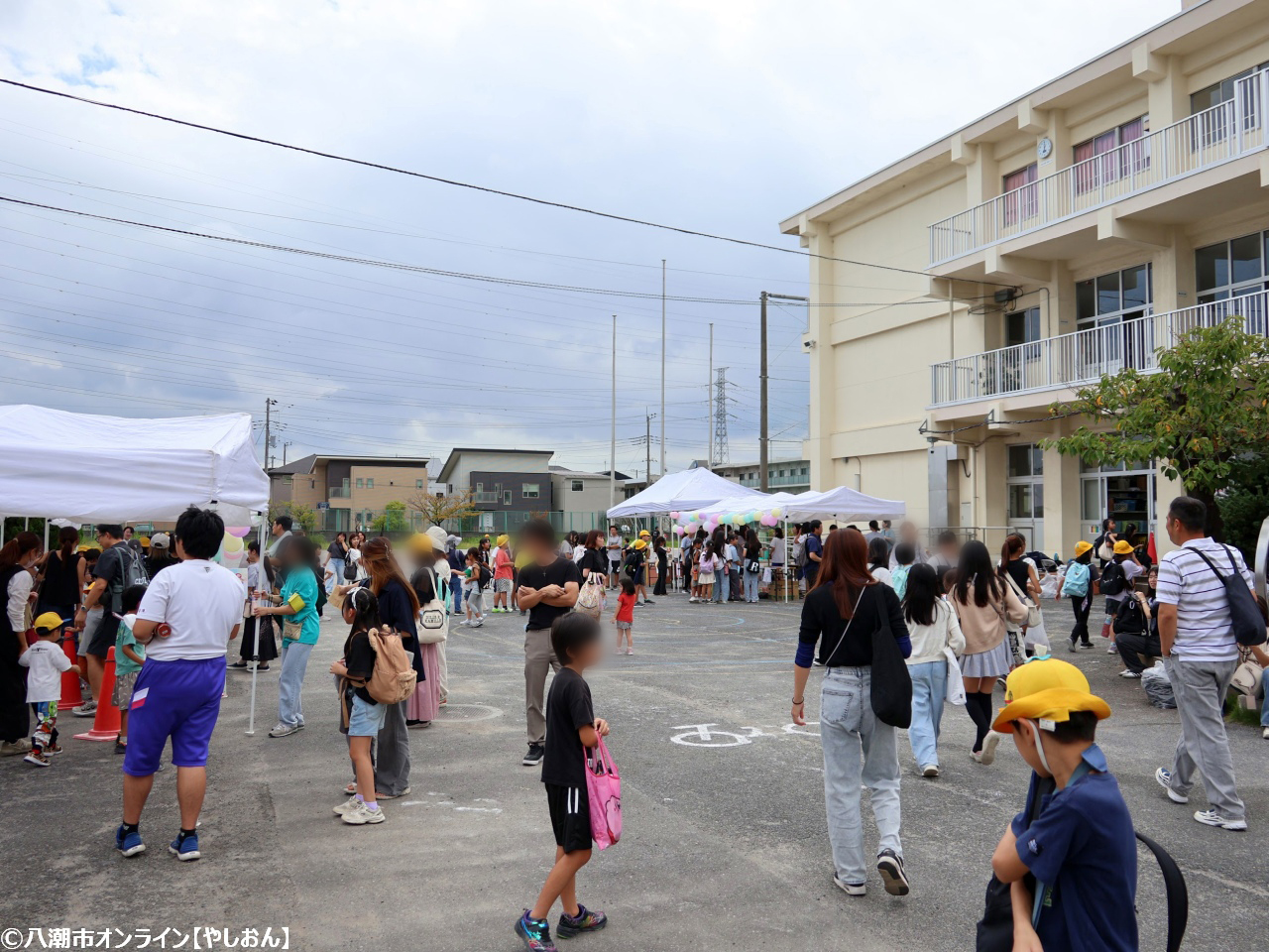 校庭ではハンドボールやミニバス体験、ストラックアウトなどのスポーツブースが人気を集め、校舎内では「おえかきせんべい」や「なぞときイベント」も開催されました。