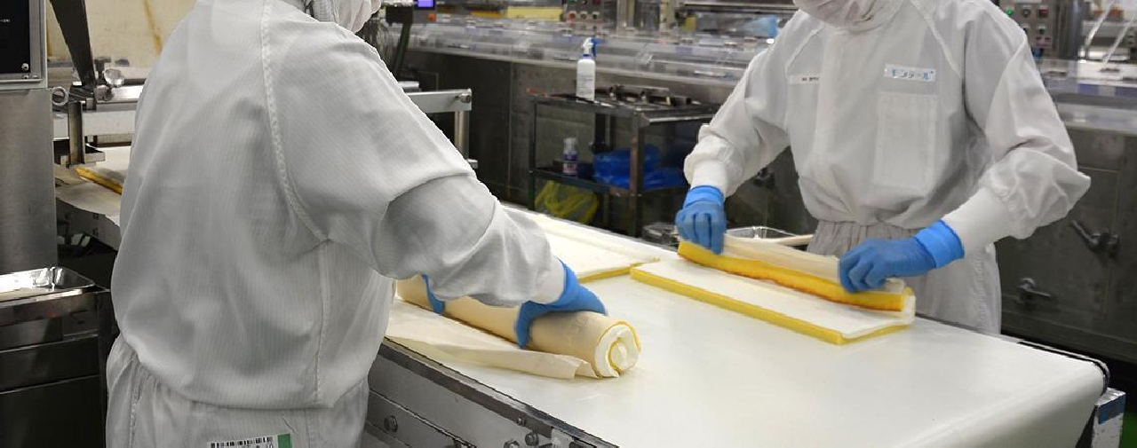 一つひとつ人の手で巻いている様子です。とても柔らかい生地であるため、機械では巻けない!そんな手巻きロールケーキなんですね。
