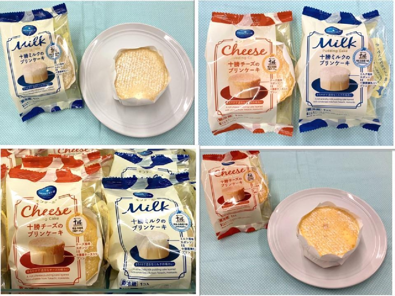 十勝産チーズを100%使用した「十勝チーズのプリンケーキ」と、十勝産練乳を使用した「十勝ミルクのプリンケーキ」は、5月1日に発売開始された、ふんわりと軽いスポンジ+なめらかなプリンのケーキです。チーズの味わいとほんのり塩味がクセになりそうな、十勝チーズのプリンケーキ。ミルク感がたまらない十勝ミルクのプリンケーキです。