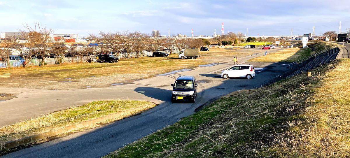 堤防上のトイレのある場所は、堤防の幅が広いことに気付かれていますか?