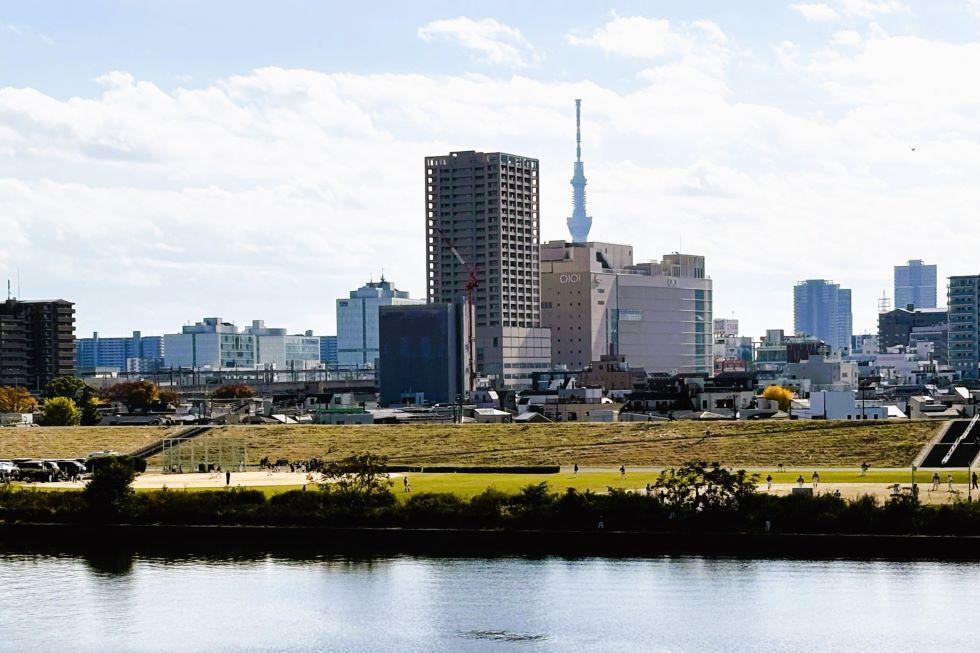 五反野駅を左に見つつ南下し、首都高速・中央環状線を越えると荒川の堤防になります。この間、15分ほどでしょうか。
